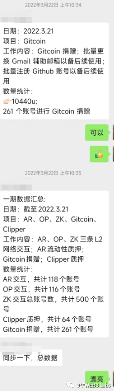 从2022年4月开始再次加大对Arbitrum和zkSync布局,截至到2023年3月才有收获,当Arbitrum宣布空投,整个团队开始兴奋,因为罗马DAO团队做了2600个Arbitrum的交互账号。单个账户成本70U,平均每个有2200U的ARB空投,简单回顾一下2022年的团队沟通记录。
