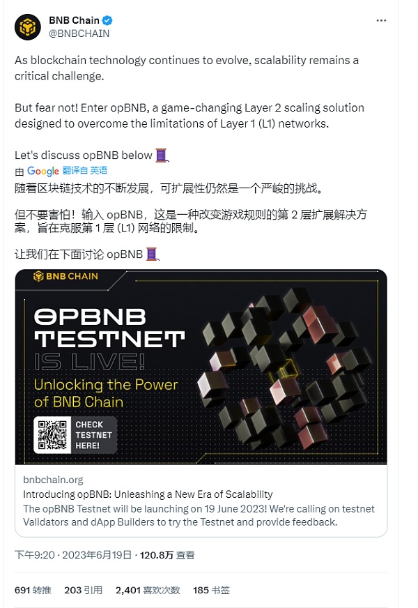 币安链的Layer2--opBNB来了,6月19日开放了测试网