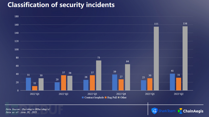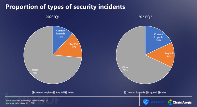 在第二季度中,合约漏洞事件发生比例较上一季度明显上涨。