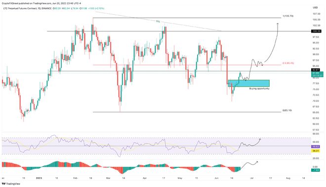 日线图上的莱特币价格在过去五天上涨 12% 后,目前正在重新测试 82.81 美元的关口。虽然交易者可能会感到害怕,但他们现在不应该扣动扳机。市场参与者预计将小幅回升至 78.97 美元至 76.15 美元的支撑区域。