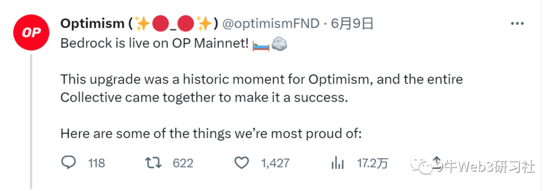 9牛Web3商学院对Optimism的Bedrock升级持有高度期待,认为它体现了创新精神和深厚的技术实力。Bedrock的推出,标志着Rollup技术的新里程碑。我们相信,Optimism将继续在以太坊Layer2生态中扮演领导者角色,提升Layer2的实际应用效果和用户体验。我们推荐社区成员关注并参与这个具有巨大潜力的项目。我们将继续关注Optimism的发展,致力于为学员提供最前沿的知识和最有价值的信息,期待更多创新项目共同推动Web3的发展。
