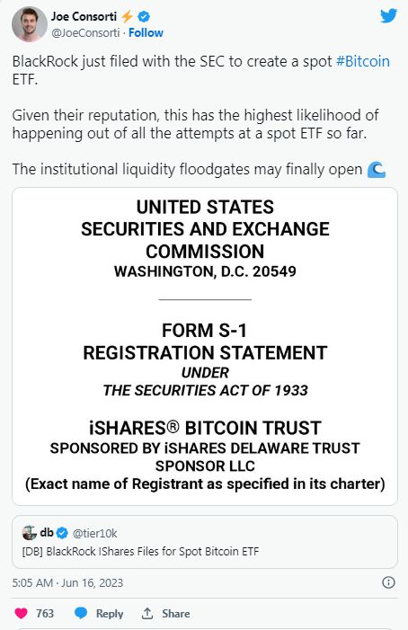 6 月 19 日至 21 日期间,比特币上涨 15%,升至 30,300 美元,令大多数交易者感到意外,引发了 1.25 亿美元的杠杆空头期货合约清算。缩小上涨触发点的范围很复杂,但一些分析师指出,如果贝莱德的交易所交易基金(ETF)申请获得监管部门批准,机构投资者可能会流入。