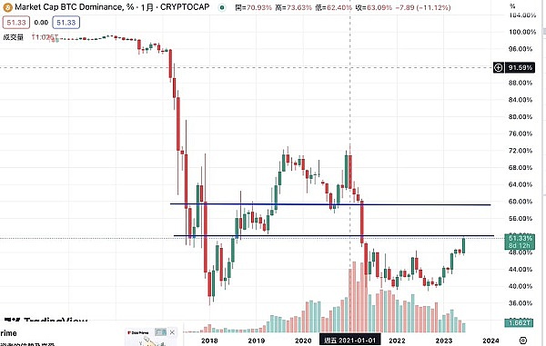 .、‘大饼的市值占比也是回到了50%以上,突破了压力位,下个区间就是60%左右,下半年有机会到,在为了牛市准备,大饼依然是外部流量资金布局的首选,以太坊和叙事山寨是留存流量的。