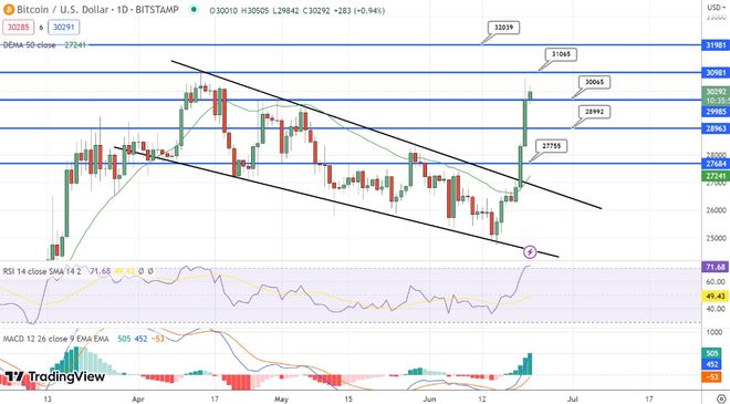 这一趋势对比特币的价格产生了积极影响,推动其达到 30,000 美元的令人印象深刻的高度。