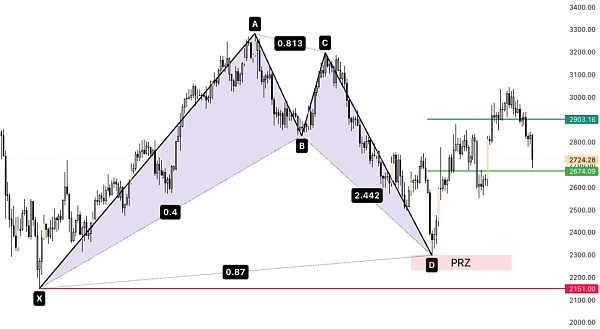 蝙蝠的 PRZ 主要使用两个工具斐波那契和斐波那契趋势扩展,三点找较接近 D 点的数值。