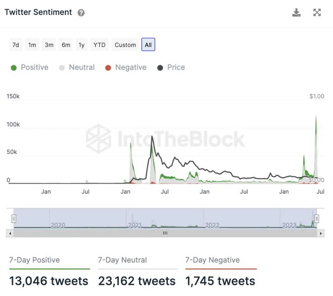尽管趋势看跌,但 13,000 条积极的推文表明人们对狗狗币的未来普遍持乐观态度。