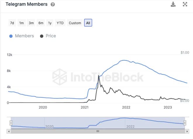 狗狗币电报群的成员急剧下降,表明用户参与度下降。