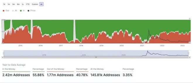 大约 40.78% 的地址仍处于亏损状态,而 3.35% 的地址已达到盈亏平衡点。