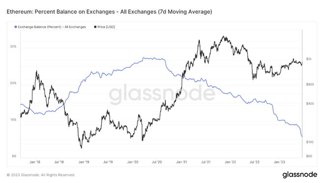 交易所以太坊余额大跌创历史新低 曾触发ETH跳涨33%