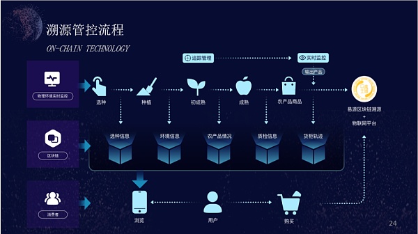 农产品溯源:利用区块链技术记录和存储农产品的生产、加工、运输等环节的信息,包括种植管理、施肥、农药使用、采摘时间、加工工艺、运输路径等。消费者可以通过扫描产品上的溯源码获取详细的产品信息,包括原产地、生产环境、检验报告等,增强消费者对农产品的信任和购买的主动性。