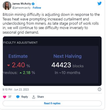 与此同时,总部位于德克萨斯州的比特币能源公司 Cormint 的首席执行官 James McAvity 表示,当地事件是造成这一困难的原因。