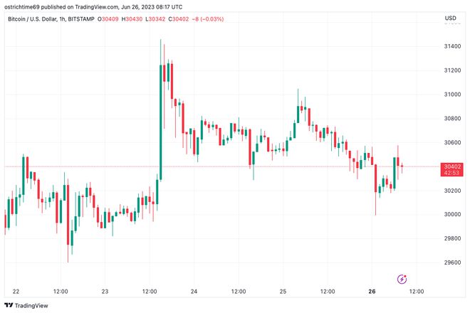 尽管缺乏动力,多头还是成功守住了 30,000 美元大关,根据Cointelegraph Markets Pro和TradingView 的数据,截至 6 月 26 日撰写本文时,30,500 美元重新成为焦点。