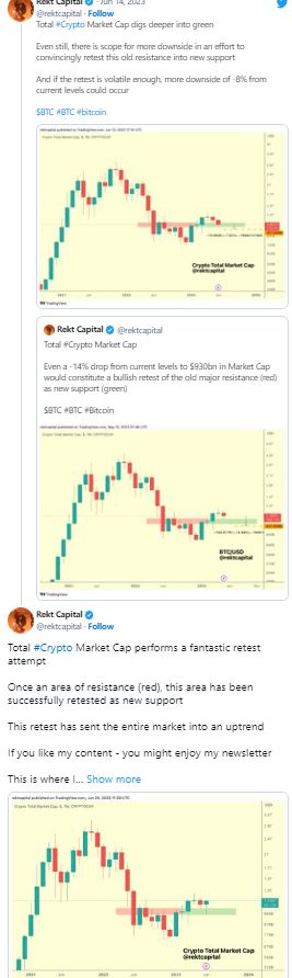 交易公司 8 的创始人兼首席执行官 Michaël van de Poppe 也在关注整个加密货币市场,他着眼于其收复 200 周移动平均线的潜力。