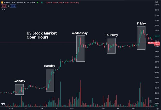 加密交易商Daan Crypto Trades指出:“上周,大部分行动和购买压力都发生在美国股市开放时间。”