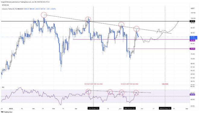 在突破 85.56 美元的支撑位后,莱特币价格需要突破 100 美元的心理水平。清除这两个封锁将为 LTC 重新测试 140 美元阻力位开辟道路。