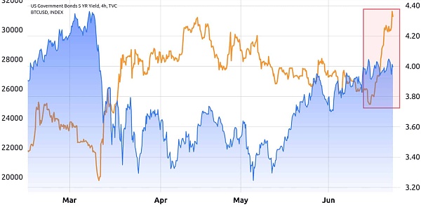 重要的是要考虑到对国债的需求和股市的表现可能会影响加密货币的价格。在不确定或市场动荡时期,投资者可能会寻求提供稳定性并对冲潜在风险的资产。
