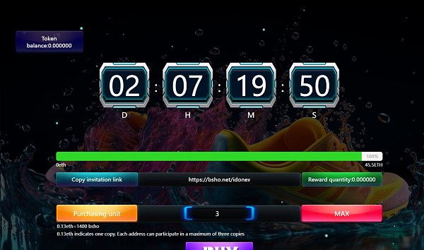 铸币方案:每人(单ip地址)最多参与3份,每份为0.13ETH=1400BSHO,软顶为45.5ETH,截止目前官网开始铸币8小时,已经达到50个多ETH。这种铸币模型,最大的优点在于,没有大户可以多地址铸币,每个人最多就0.39个ETH,筹码分散,开盘后不怕大户砸盘,更容易实现高倍数。共识也高。想铸币的小伙伴,可以点击链接从以太坊钱包浏览器打开去参与铸币。https://bsho.net/idonew1.html?invite=0xbd6c84c0c19dcfa35b46f6881c8aaaf903479ace