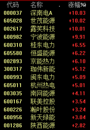 今天上午,电力板块逆市走强。电力板块中,深南电A、世茂能源等多股涨停。
