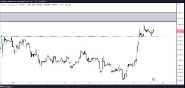 他解释:“看来这将是低于阻力位盘整看涨的时期之一,翻转30000至32000美元的所有赌注都会失败。尽管我已经做好了下跌的准备,但对这种情况的发生,还是不太有信心。”
