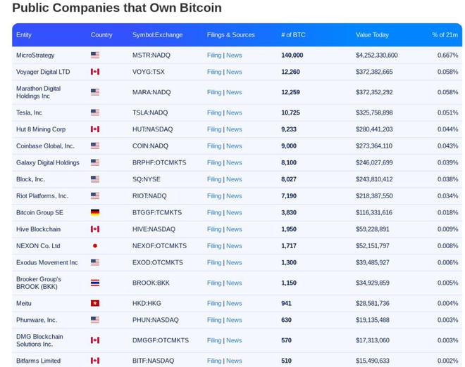 根据监控资源Bitcoin Treasuries的数据,微策略目前拥有整个潜在比特币供应量的近0.7%。它还拥有比第二大金库Voyager Digital多10倍的资金,后者拥有12260枚比特币。