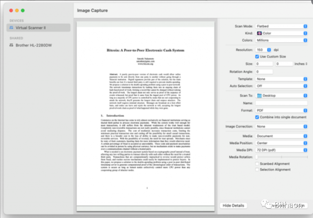 图:ImageCapture扫描比特币白皮书
