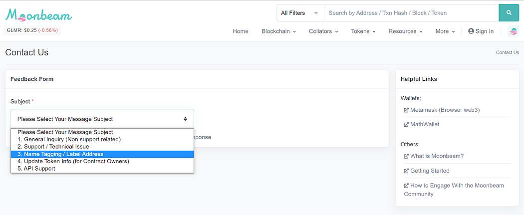 当提交或更新合约数据至Moonscan时,您需要提供以下内容: