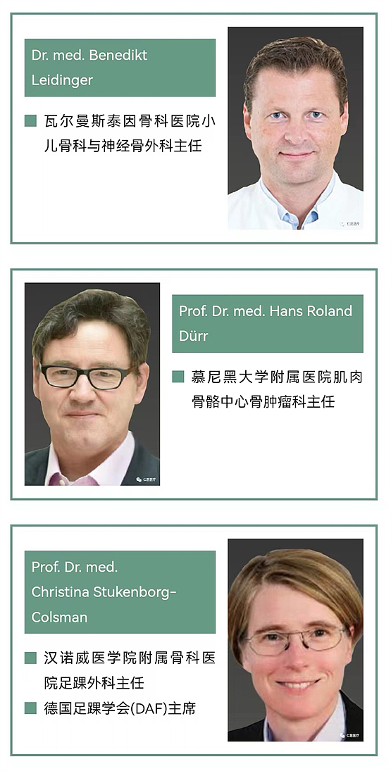 深圳大学附属华南医院、和祐国际医院、柏林夏洛特大学综合医院、哥廷根大学医疗中心、汉诺威医学院附属骨科医院、汉诺威-朗根哈根帕拉塞尔苏斯医院、瓦尔曼斯泰因骨科医院