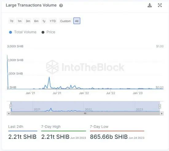 IntoTheBlock 的数据显示,柴犬在过去一周的大交易量显着增加。2.21万亿个SHIB代币的大量推动了大额交易的总量。值得注意的是,这个数字代表了过去 7 天内观察到的最高交易量。