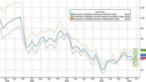调查主管Joanne Hsu称:“总体而言,这种显著的上升反映出,本月初债务上限危机的解决,以及对通胀趋软的更积极看法,使人们的态度有所恢复。”