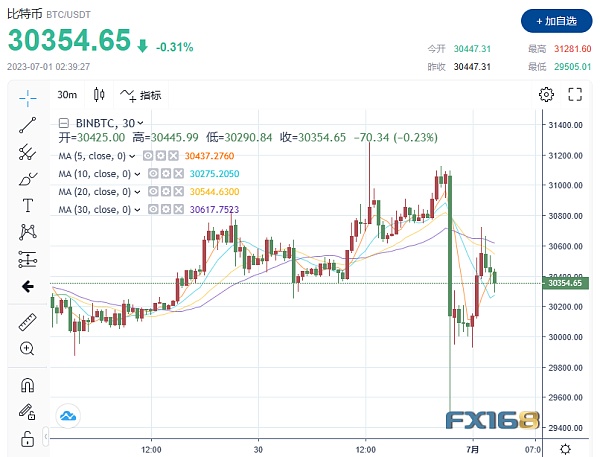 周五(6月30日),美国公布的数据显示,5月份PCE物价指数增速放缓,不过核心PCE物价指数依然停滞不前;密歇根大学6月份消费者信心指数较上月上升8.8%,较去年同期上升28.8%。与此同时,美联储鸽派官员古尔斯比表示,7月决策者是否应该升息或维持利率不变还为时过早,但他表示,通胀仍远高于目标,且比预期更为持久。受此影响,美元指数自高位回落80点,日元兑美元逼近日本央行去年出手干预的水平;美股三大股指齐升,其中道指上升超320点;有关比特币ETF申请的一则消息一度刺激比特币跌破3万美元关口,但随后自低位有所反弹。