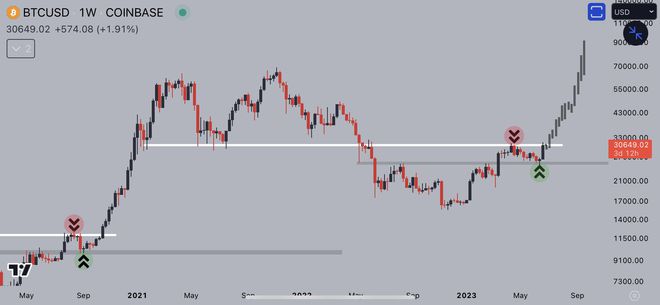 “比特币的月收盘价将高于过去三个月拒绝价格的阻力位,现在比特币轻松地保持在同一水平上方,”他在解释性图表上评论道。