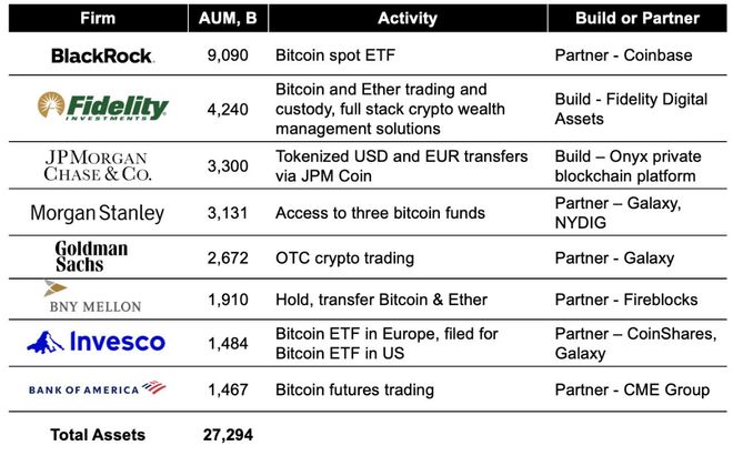 CoinShares首席战略官Meltem Demirors强调,至少有8家主要金融机构已表示将进军数字资产领域,其中包括贝莱德现货比特币ETF备案,以及富达的加密财富管理解决方案。其他包括摩根大通、摩根士丹利、高盛、纽约梅隆银行、景顺和美国银行。