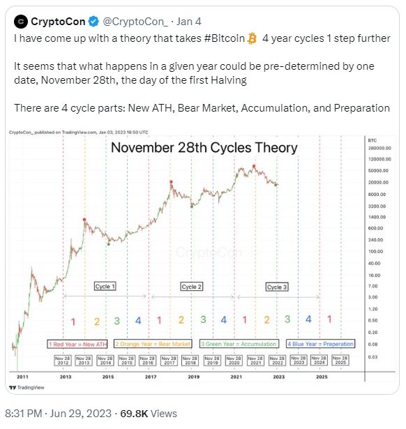 著名交易员Jelle在推特更新中写道:“比特币2020年的分形仍在发挥作用。”他认为,比特币正在重复2020年末的突破。
