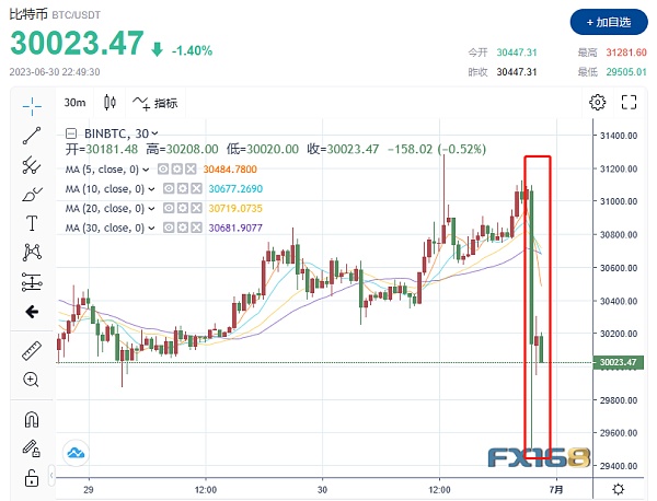 有关美国证交会表示现货比特币ETF的申请文件不够清晰和全面的消息传来后,比特币向下跌破30000美元,刷新日低至29505.01美元。