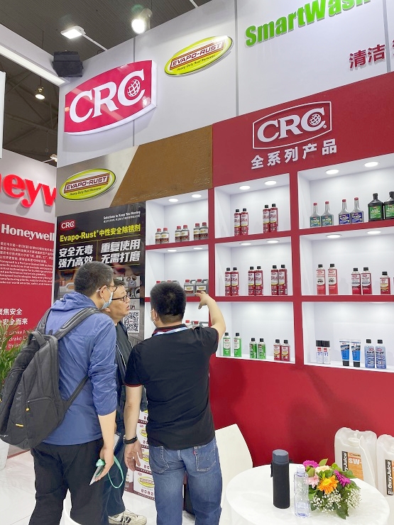 本次展会,CRC工业面向客户重磅发布了包括路路通®多用途防锈润滑剂、SmartWasher®可生物修复零件清洗系统、BenchtopPRO®便携式清洗机(升级版)、Evapo-Rust®中性安全除锈剂、Brakleen刹车部件清洗剂、Trans-X AT自动变速箱止漏剂、Screwloose工业级渗透松锈剂等产品,展示了适用不同场景的高效、绿色、安全维保解决方案,满足了人们对汽车维修保养的需求,吸引了现场嘉宾的广泛关注。