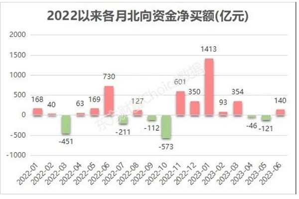 2023年上半年,北上资金合计净流入A股1833.24亿元,超过2022年全年净流入的2倍。