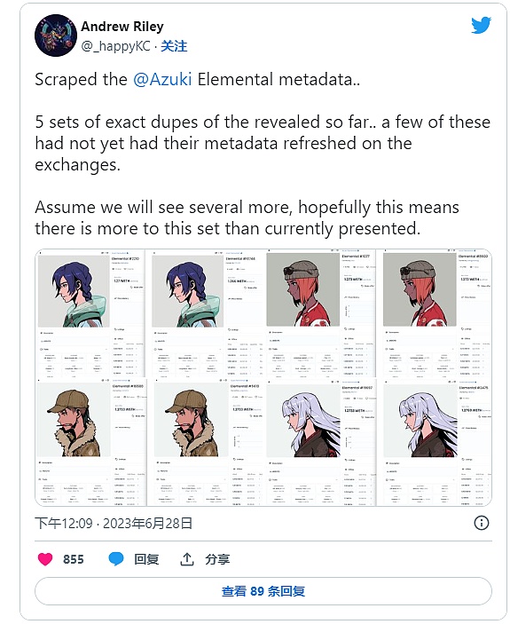 但当元素们暴露出他们的真实形象时,“灾难”就开始了,结果发现这些形象与小豆几乎一模一样。随后, Azuki社区意识到销售质量低下,以及开发团队如何通过发布与之前的 NFT 相同的方式来“稀释原始 Azuki 的价值”。