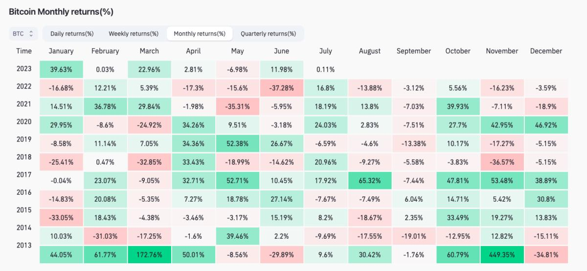 然而,从历史趋势的角度来看,七月似乎更有希望。在比特币的整个历史上,本月内比特币价格的跌幅从未超过 10%。