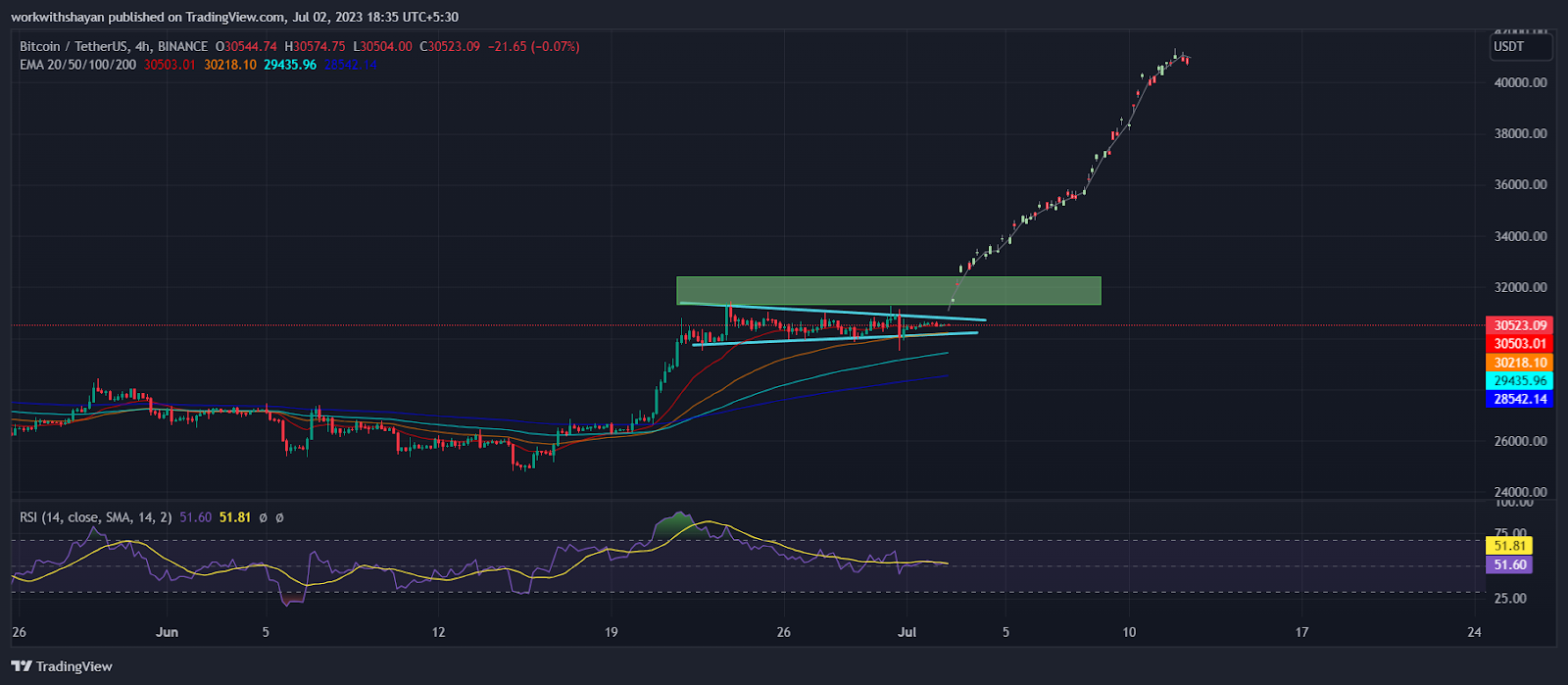 进入七月,加密市场热切等待即将到来的举措。旗舰加密货币比特币一直在 3.05 万美元大关徘徊,这一水平让投资者和分析师都保持警惕。美国证券交易委员会 (SEC)最近对现货 BTC ETF 申请的减少带来了巨大的抛售压力,给投资者带来了立即采取行动的警告信号。每个人都在思考“比特币的下一步是什么?”