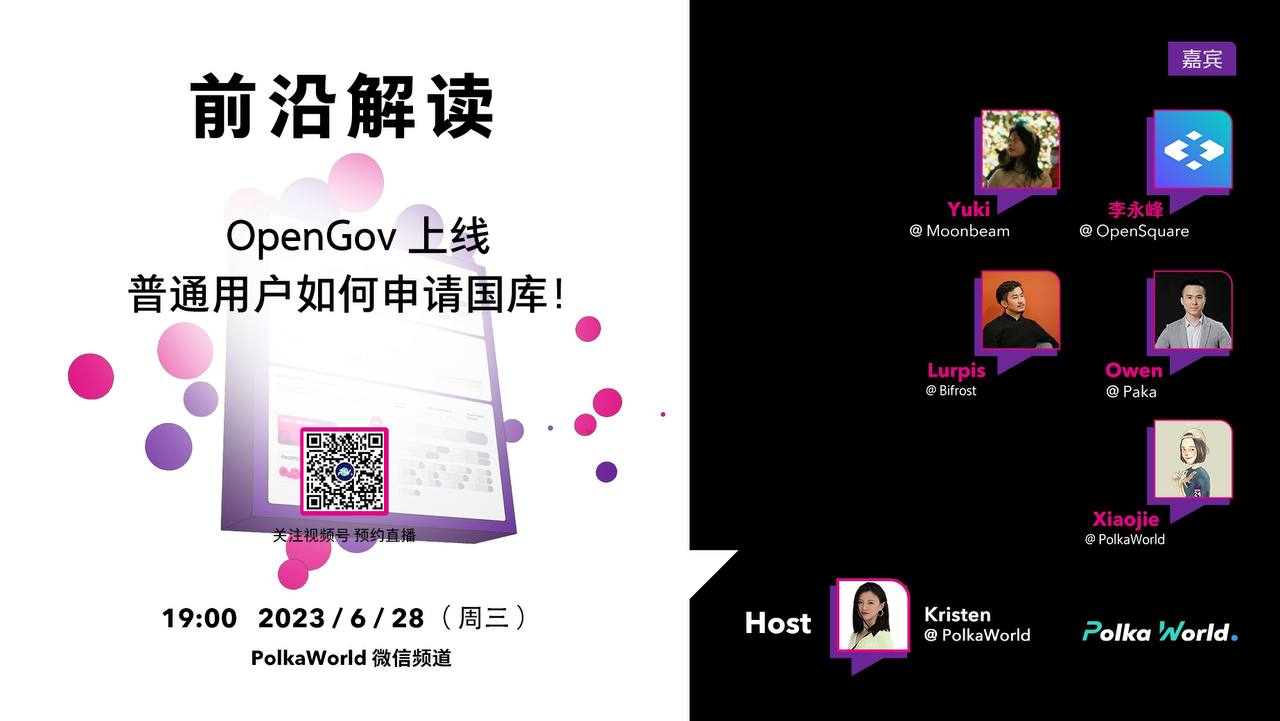 Moonbeam中文市场经理Yuki与其他平行链相关负责人一起,在波卡世界的直播中畅谈了最近上线波卡的OpenGov。