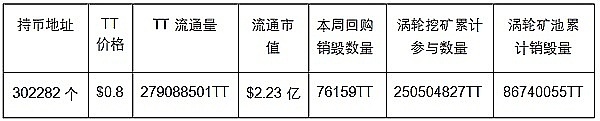 TT(Tdex Token)回购销毁76159枚