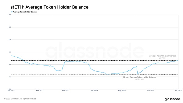 而自上海升级以来,stETH平均余额又增加到51.0 stETH(10万美元),这表明现有的持有者确实在增加他们以stETH形式质押ETH的份额;这也表明Lido的流动性质押新用户并没有明显增长。