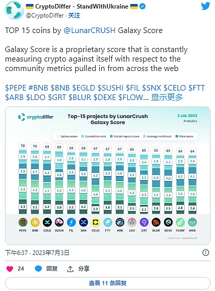 截至 7 月 4 日,PEPE 的 Galaxy 得分最高。这可以被视为 PEPE 可能进入另一场牛市反弹的强烈迹象。