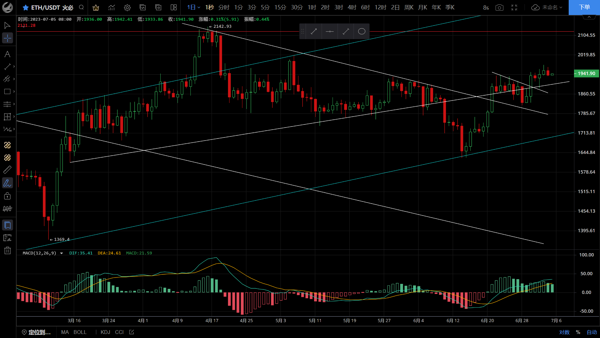 以太坊昨日整体呈震荡下行走势,白盘最高触及1968一线受阻回落,期间二次反弹未破前高再次下跌,低位至1931一线支撑反弹,目前币价在1940附近运行,四小时级别反弹高点逐渐降低,macd空头运行双线死叉向下,行情下跌至ma30均线支撑,ma7均线向下指引,目前走势呈震荡回调,下方1930支撑有效空头未能延续,日线来看k线收阴多头减弱,上行有所停顿,预计高位震荡的概率较大,趋势而言多头依然是主旋律,短期多空反复薇娅蓄力突破性做准备,思路建议回踩低多为主高空为辅,上方压制1960-1980,下方支撑1930-1910