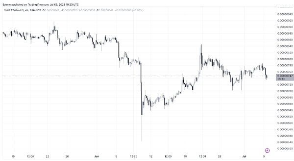 Kusama 最近在 Telegram 频道中专门针对Shibarium讨论做出了暗示,这可能证实了有关主网启动日期和地点的理论。此前,他透露柴犬要“去某个地方”,并澄清这个地点将在美国境外。不管怎样,柴犬(SHIB)在过去 24 小时内一直处于下降趋势。截至撰写本文时,以狗为主题的 meme 币已下跌近 4%,目前交易价格为0.00000745 美元。然而,过去一周,SHIB的市值飙升了2亿美元。