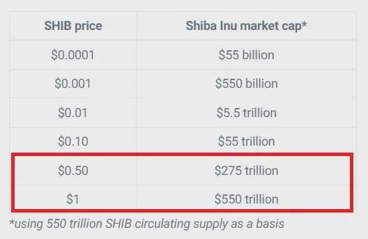 说到这里,柴犬的市值需要达到 275 万亿美元才能考虑达到 0.50 美元大关。另一方面,SHIB 的市值必须超过 550 万亿美元,才能考虑达到 1 美元的里程碑。