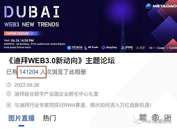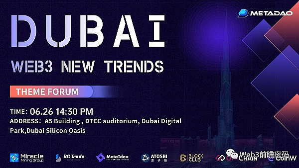 2023年6月26日在迪拜举办的《迪拜WEB3.0新动向》主题论坛圆满结束,由主办方MetaDAO携手Mircale、BLOCKCLUB、ATOSHI等品牌方共同举办,并取得热烈反响。