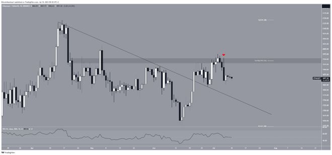以太坊 (ETH) 价格在 7 月 3 日触及 1,976 美元高点后下跌,表明针对此前上涨的短期回调。