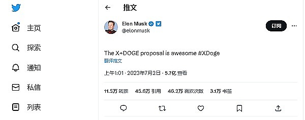 狗狗币DOGE支持者、特斯拉首席执行官Elon Musk在社交媒体发文“The X+DOGE proposal is awesome #XDoge”(X+DOGE这个提议非常棒 #XDoge),或暗示XDoge为DOge会是一个很棒的提议,前景闪亮。目前,多个加密社区账号在该推文下留言。
