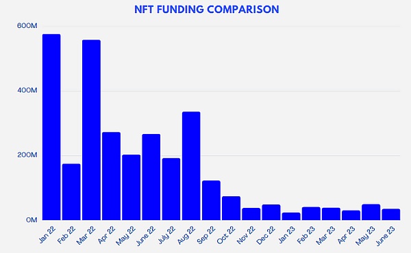 重点关注 NFT 本身,六月对于该领域来说是一个令人难忘的月份,因为许多 NFT 系列面临投降。Azuki 的 Elementals 揭示的组合以及对借贷市场的连锁反应导致了 NFT 的大规模抛售。Azuki 在一个月内大肆宣传其拉斯维加斯活动,随后宣布了其新系列“Elementals”。大约3900万美元的流动资金急于购买他们的新藏品,却发现艺术品与原藏品惊人相似,导致原藏家大失所望。